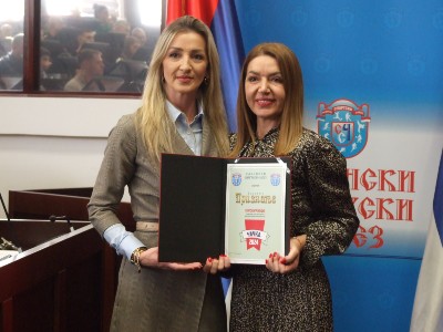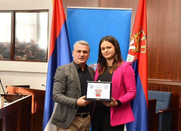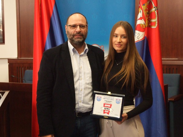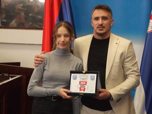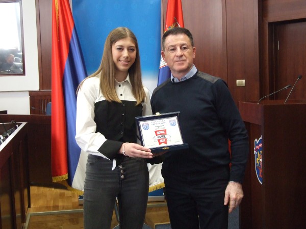 Координаторка Спортских игара младих за град Чачак Ивана Вукајловић уручила је посебно признање Марији Михајловић представници Спортских игара младих Србије