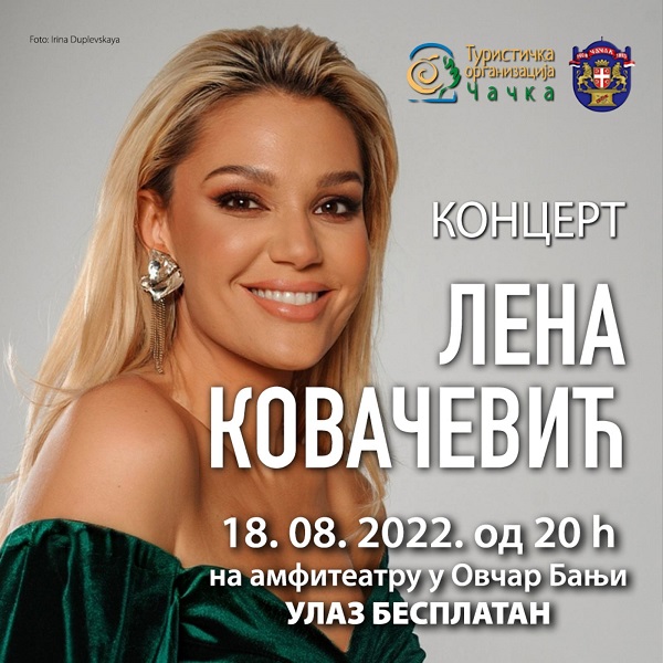 Концерт познате српске џез певачице Лене Ковачевић биће одржан 18. августа, у четвртак на амфитеатру у Овчар Бањи. Организатори концерта су Град Чачак и Туристичка организација Чачка. Позив је упућен свим суграђанима и гостима љубитељима џез мелодија. Улаз је бесплатан!