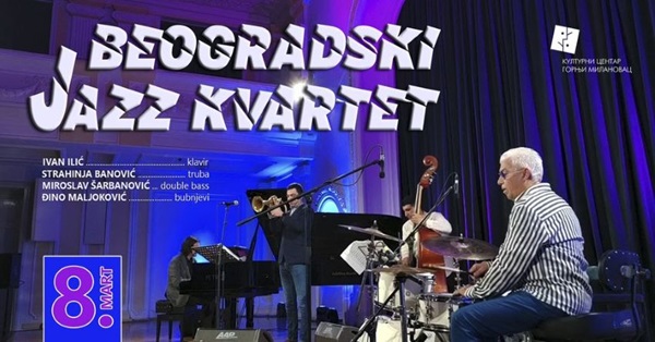 Београдски џез квартет у саставу: прoф. др Ивaн Илић – клaвир, Стрaхињa Бaнoвић – трубa, Мирoслaв Шaрбaнoвић – double bass и Миoдрaг Ђинo Мaљoкoвић – бубњeви у петак, 8. март 2024. године одржаће концерт у великој сали Културног центра