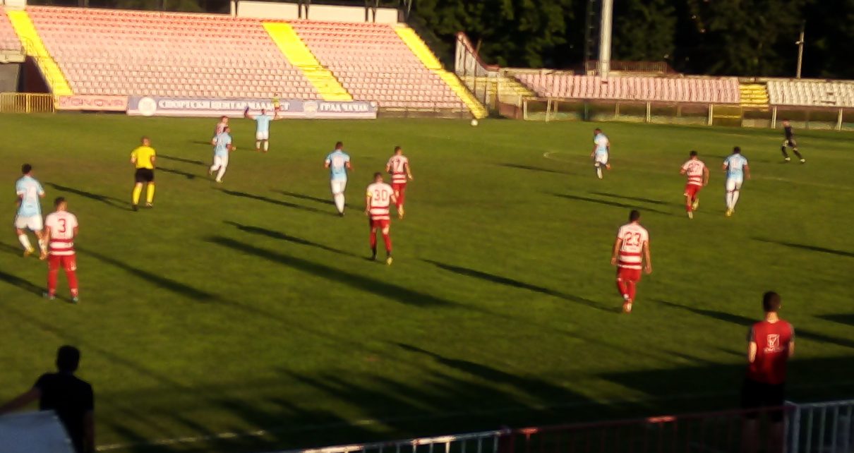 Чачани су од самог старта утакмице одигране јуче на Градском стадиону пред 500 гледалаца загосподарили тереном и нису давали никакве шансе екипи „Такова“ из Горњег Милановца. Ипак, до гола се чекало читавих 67. минута, када је капитен „зебри“ Милекић, 20 метара искоса са леве стране, топовским шутем „из прве“ погодио горњи леви угао противничког гола. Био је то погодак за шпице. Стевлић је потврдио победу од 2:0 голом из непосредне близине у четвртом минуту зауставног времена.