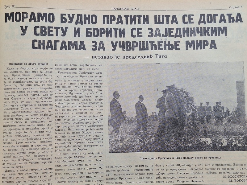 – Ти споменици симболизују сву несрећу и трагедију српског народа 20. века. Први споменик подигнут је 1956. године у спомен на погинуле из редова Друге пролетерске бригаде, да би 1962. године поред постојећег споменика била саграђена и костурница погинулих црвеноармејаца. У тој спомен костурници сахрањено је 408 бораца и официра Црвене армије који су погинули, углавном,  у ослобођењу Чачка и овог дела Србије, у јесен 1944. године. Идејно решење за спомен – костурницу дао је чувени Десимир Жижовић из Горњег Милановца, који је познат пре свега, по чувеном стрипу за децу „Мирко и Славко“. На споменицима се налазе посвете и имена страдалих – каже Марушић.