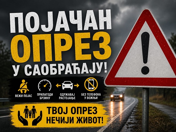 Имајући у виду предстојеће првомајске празнике, апелујемо на све учеснике у саобраћају да буду одговорни и савесни, да поштују прописана ограничења брзине, не управљају возилом под дејством алкохола, користе сигурносни појас и посебну пажњу обрате на заштиту деце и других рањивих категорија учесника у саобраћају. Одговорним понашањем сваког појединца можемо допринети смањењу броја саобраћајних незгода и сачувати људске животе.