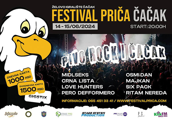 Sve je spremno za večerašnju veliku pank-rok žurku na „Želovom“! Koncertipočinju već od 20 časova, a prvo festivalsko veče otvoriće bend“MIDLSEKS” iz Čačka. Nakon toga, nastupiće još tri benda, koji do sada nisuimali prilike da nastupaju u našem gradu: “LOVE HUNTERS”, “PERODEFORMERO” i “CRNA LISTA”. Ne propustite sjajnu svirku vrhunskihmuzičara! Već sutra (subota 15. jun) […]