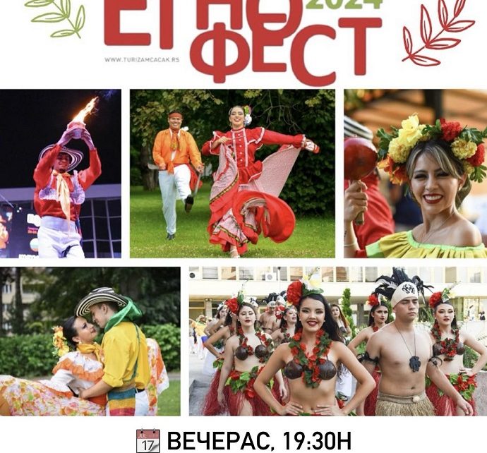 Након дефилеа фолклорних ансамбала, од Градске плаже до Градског трга, на платоу испред Дома културе, синоћ је свечано отворен осми „Етно-фест”. Ова манифестација, већ осам година у Чачак доводи културно – уметничка друштва из различитих делова света, која се труде да на најбољи начин прикажу културу и традицију свог народа. У години када је наш […]