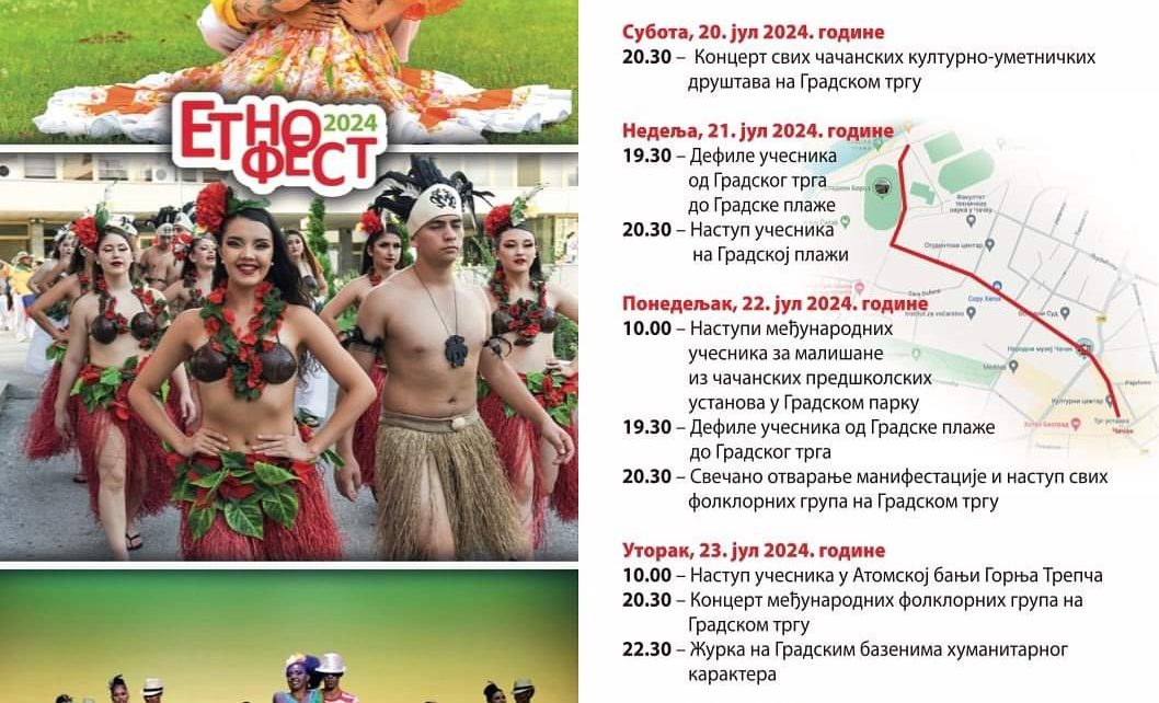Град Чачак од 20. до 25. јула домаћин је ЕТНО-ФЕСТА, јединственог Фестивала фолклора који окупља велики број домаћих и страних ансамбала, који ће за време трајања манифестације представити своју културу, традицију и донети потпуно нови звук у град на Морави. – Ово је јединствени Фестивал у Србији, а и шире, где окупљамо земље из различитих […]