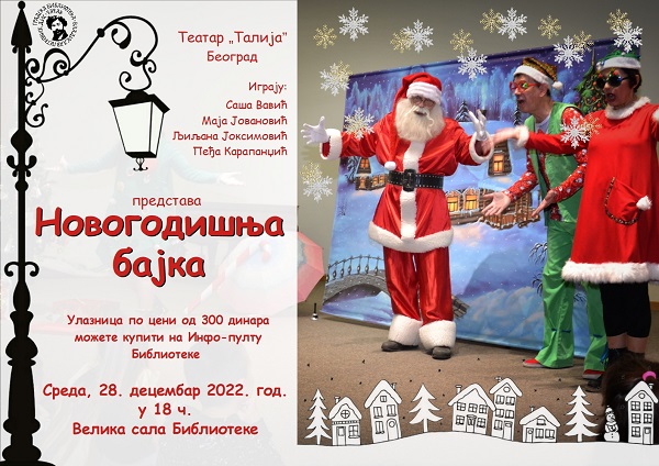 Театар „Талија” стиже са својом чаробном представом „Новогодишња бајка” у среду, 28. децембра у 18 часова на велику сцену Градске библиотеке Чачак. To je причa о принцези која није хтела да заспи док не дође Деда Мраз. Покушавајући да је успавају краљ и краљица уз помоћ деце, причају јој познате бајке, али она хоће нешто […]