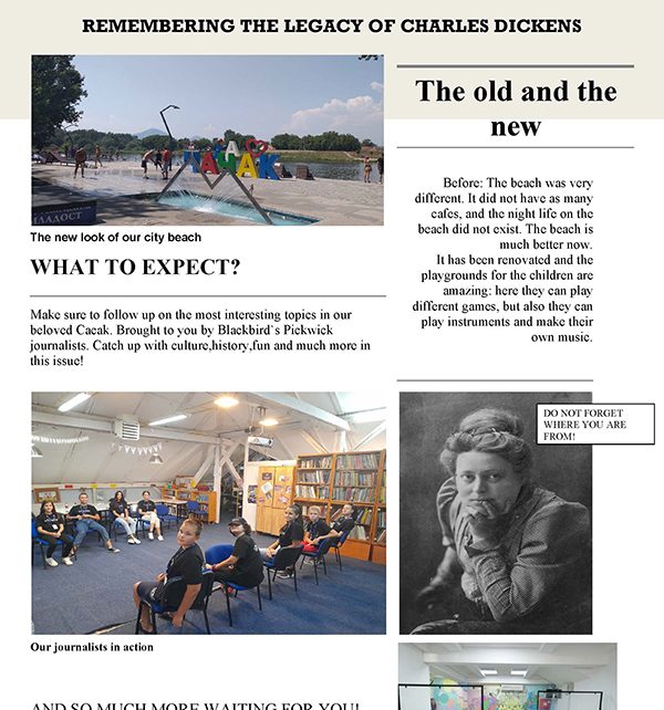 JEZIČKA ŠKOLA “BLACKBIRD” U POSETI “ČAČANSKOM GLASU” Grupa učenika Jezičke škole “Blackbird”, uzrasta od 10 do 15 godina, u okviru letnjeg programa, započela je realizaciju projekta “Pickwick Paper” posetom našoj redakciji. Cilj projekta je da desetak polaznika ove škole napravi novine, koje će predstavljati presek dešavanja u jednoj sedmici, odnosno, događaja od 16. do 20. […]