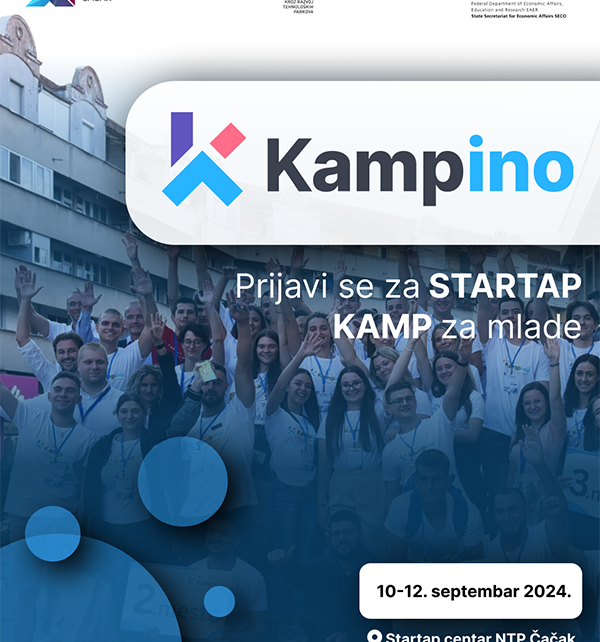 НАУЧНО-ТЕХНОЛОШКИ ПАРК ЧАЧАК ОТВОРИО ПРИЈАВЕ ЗА СТАРТАП КАМП ЗА МЛАДЕ Научно технолошки парк Чачак, као место где расту иновације, отворио је пријаве за трећи по реду стартап камп за младе “Кампино 2024”. “Кампино” ће бити одржан од 10. до 12. септембра, у Стартап центру Научно–технолошког парка Чачак, са циљем да млади закораче у стартап свет, […]