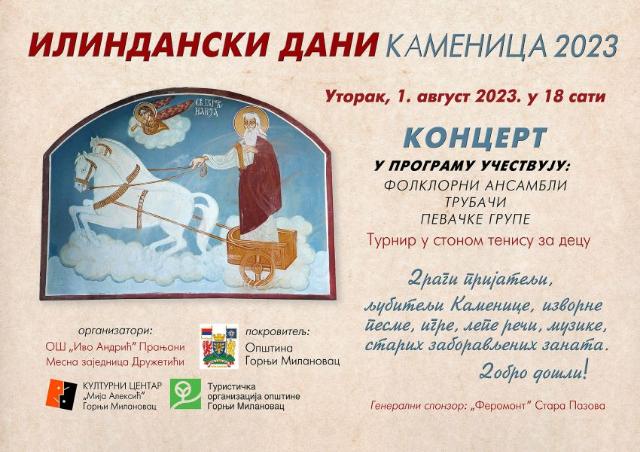 За љубитеље изворне песме, игре, лепе речи, музике и старих заборављених заната Месна заједница Дружетићи и Oсновна школа „Иво Андрић“ из Прањана у сарадњи са Општином Горњи Милановац, Туристичком организацијом и Културним центром у уторак 1. августа 2023. године од 18 сати у Каменици организују манифестацију под називом „Илиндански дани“. У програму ће наступити фолклорни […]