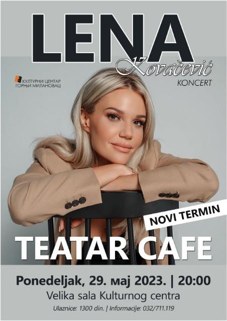 Лена Ковачевић, певачица и композитор и једна од најважнијих музичара нове генерације у понедељак, 29. маја 2023. године одржаће концерт великој сали Културног центра Горњи Милановац. Почетак концерта је у 20 часова. Информације и резервације: 032/711.119 Извор: Културни центар Горњи Милановац