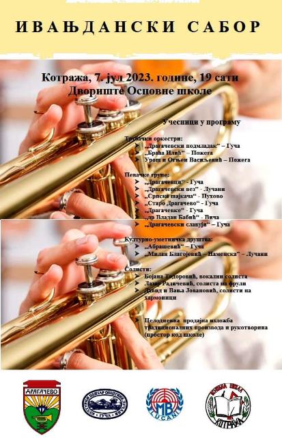 Ивањдањски сабор биће одржан у Котражи, у просторијама Основне школе „Котража“ 7. јула од 19.00 часова. Организатори су Општина Лучани, Драгачево, Црквена општина Лучани, „Милан Благојевић“ Лучани и Основна школа „Котража“. Учесници у програму су: Трубачки оркестри: „Драгачевски подмладак“ – Гуча „Браћа Илић“ – Пожега Урош и Огњен Васиљевић – Пожега Певачке […]