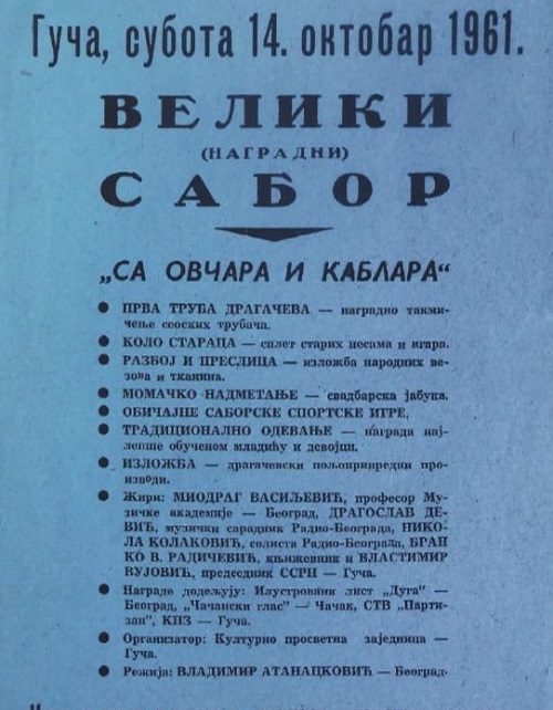 СЕДМО СЕЋАЊЕ НА ПРВИ ДРАГАЧЕВСКИ САБОР ТРУБАЧА 14. ОКТОБРА У ГУЧИ