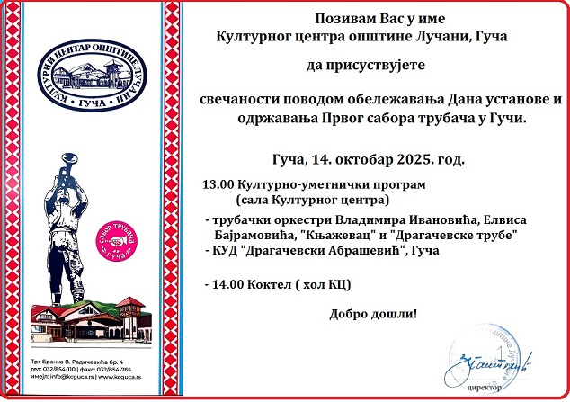 И ове године Драгачевци организују сећање на дан када је одржан први Сабор трубача у Гучи. Тим поводом, у уторак, 14. октобра, биће одржана манифестација 7. Сећање на Драгачевски сабор трубача, а организатори су припремили богат културно-уметнички програм.