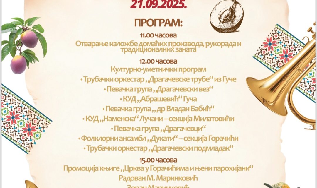 СНАГА И ЗАЈЕДНИШТВО СЕОСКЕ СРЕДИНЕ Манифестација „Михољски сусрети села“ први пут се одржава у Драгачеву, у недељу, 21. септембра, у Горачићима. Тога дана је и слава цркве Пресвете Богородице у Горачићима. – „Михољски сусрети села“ изузетно су значајни у погледу очувања традиције и развоја сеоског туризма. Министарство за бригу о селу наводи, да ова манифестација […]