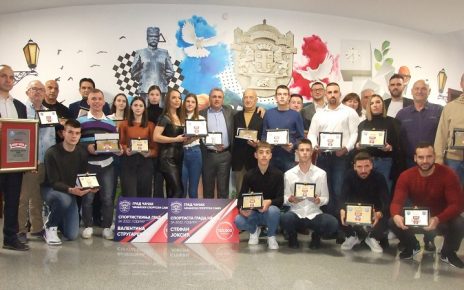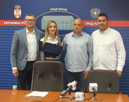ГРАД ЧАЧАК ЈЕ ОЗБИЉАН ОРГАНИЗАТОР ВЕЛИКИХ СПОРТСКИХ ДОГАЂАЈА: помоћник градоначелника Мирослав Петковић, председница Организационог одбора РСИ Ивана Вукајловић, директор СЦ „Младост“ Матија Братуљевић и помоћник градоначелника Милош Стеванић