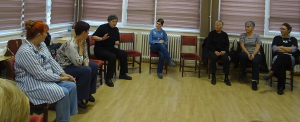 На трибини, која је одржана прошлог петка, 17. новембра, у просторијама Међуопштинског удружења глувих и наглувих, Жељка Цвјетан Гостински, глумица и драматерапеут, представила је веома занимљиву, поучну и у Србији нову методу. Реализује се већ неколико месеци као радна терапија у Дневном боравку, коју СУАБ спроводи у Београду.
