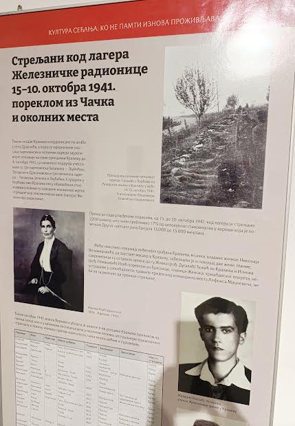 -Изложбом „Култура сећања: ко не памти изнова преживљава“ Народног музеја из Краљева, обрађено је са историјског, уметничког и са аспекта културе сећањe на најстравичније дешавање у историји Краљева, стрељање цивила од 15. до 20. октобра 1941. године, као и каснији начини обележавања, сећања и меморијализације тог догађаја. Међу 2.200, до сада пописаних, страдалих само у лагеру, тј. код Локомотивске хале Фабрике вагона, односно, некадашње Железничке радионице, а било је доста страдалих и на улицама Краљева и у рацијама казнених експедиција вермахта у селима Жичког среза током читавог октобра, налази се и 62 стрељаних пореклом из Чачка и околине, којима је посвећен део ове изложбе. Међу стрељанима су били мушкарци, жене и деца из свих крајева распаднуте Краљевине Југославије – рекла је Мирјана Савић, историчар Народног музеја у Краљеву, коаутор изложбе, приликом отварања поставке 25. септембра у Галерији Народног музеја у Чачку.