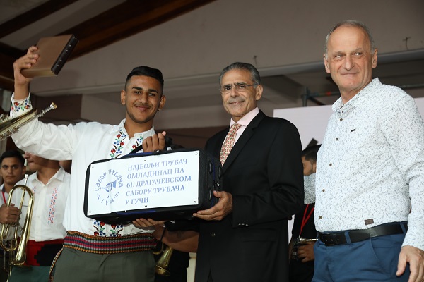 Најбољем омладинском трубачу, награду је уручио његова Екселенција амбасадор Републике Кипар у Београду, господин Димитриос Теофилакту. Такође, господину амбасадору, организатор програмског садржаја на Сабору трубача, Културни центар, уручио је плакету Сабора у знак захвалности и сећање на боравак у Гучи.