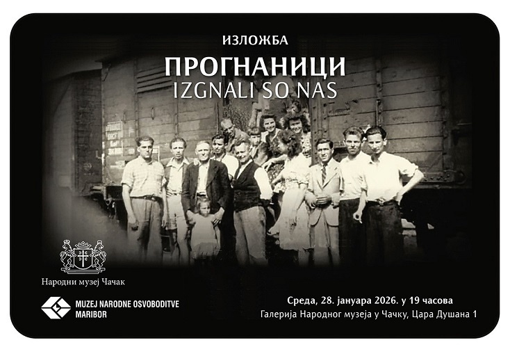 Изложба „Прогнаници“ („Izgnali so nas“) Музеја ослобођења Марибор (Muzej narodne osvoboditve Maribor), Словенија, аутора др Ирене Маврич Жижек, отвара се у Галерији Народног музеја Чачак у среду, 28. јануара 2026. године, са почетком у 19 сати.