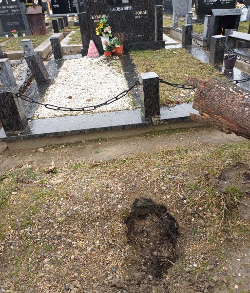 Сада, када су у снегу јасно уочени трагови и када се штета проширила и на околне гробове, постало је извесно да су узрок дивље животиње које копају дубоке ходнике испод површине. Управо ти подземни канали доводе до улегања и пуцања бетонских стаза и платоа око гробница.