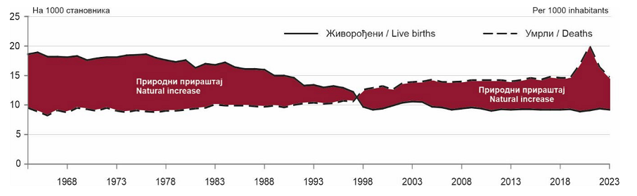Стопа фертилитета је претрпела транзицију од релативно високе стопе вредности из 1992. године, када смо имали 1,8 детета по жени. Већ 2011. године пала је на 1,4, да би по попису из 2022. на нивоу Републике Србије износила 1,6 детета по жени, а то значи да удео рађања по жени расте. Без обзира на повећање стопе фертилитета и пројекције умереног раста која ће ићи на 1,7 детета по жени до 2052. године, како истиче Јаворац, негативне прогнозе поспешује управо то што се удео жена које се налазе у фертилном периоду смањује.