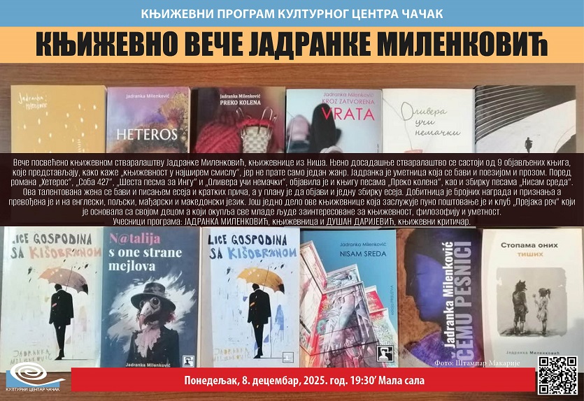 КЊИЖЕВНО ВЕЧЕ ЈАДРАНКЕ МИЛЕНКОВИЋ