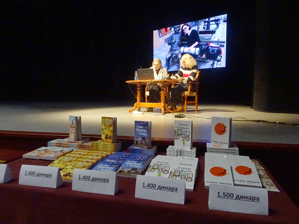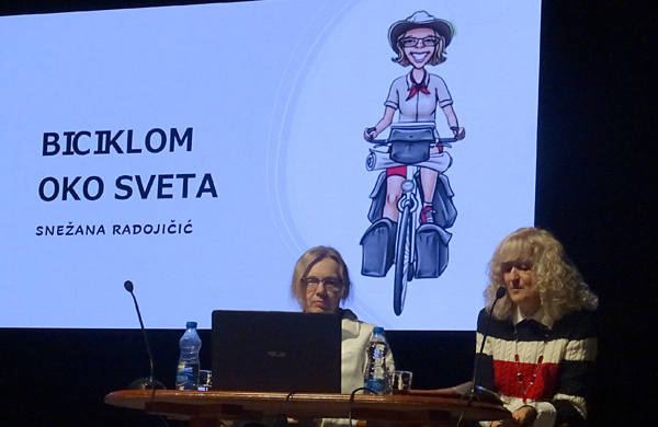 – Писац, авантуриста, велики љубитељ природе и модерни номад… До сада је прешла више од сто хиљада километара и обишла више од 50 земаља. Храбра, смела и одлучна, 2011. године, узела је свој бицикл и кренула да се котрља по свету. Живи слободно, изван свих система, пише, продаје своје књиге, гостује на предавањима. Њене авантуре имају и хуманитарну страну, прикупља новчану помоћ за оне којима је то најпотребније – за децу, стара лица и бескућнике… – рекла је, поред осталог, уредница Културно-образовног програма Верица Ковачевић, представљајући публици Снежану Радојичић и навела да се слике са Снежаниних авантура могу погледати на инстаграм налогу @ciklonomoad, на њеном блогу и фејсбук страници.