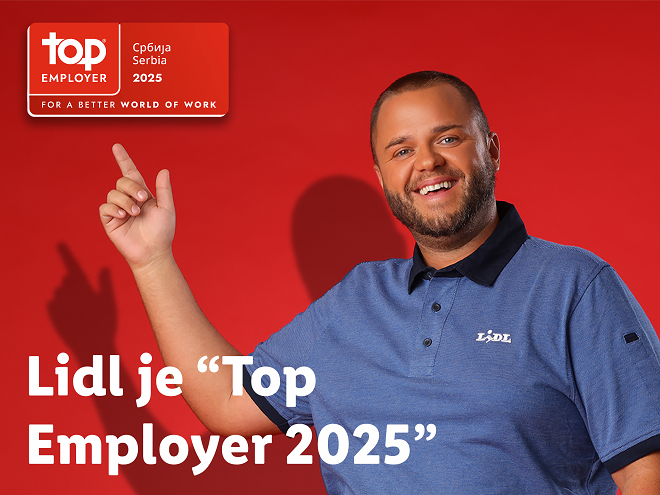 Kompanija Lidl Srbija je peti put zaredom dobitnik prestižnog sertifikata „Top Employer“, koji jednom godišnje dodeljuje nezavisna organizacija „Top Employers Institute“ najboljim poslodavcima u svetu. Ovaj sertifikat svrstava kompaniju Lidl među najbolje poslodavce u Srbiji, a u prilog tome govore i konkurentni uslovi rada koje Lidl obezbeđuje svojim zaposlenima. Istovremeno, Lidl je u 2025. godini prvi put na internacionalnom nivou dobio i priznanje „X-Large Enterprise Seal“ za velike kompanije, kao i priznanje „Top Employers Europe“ po osmi put.