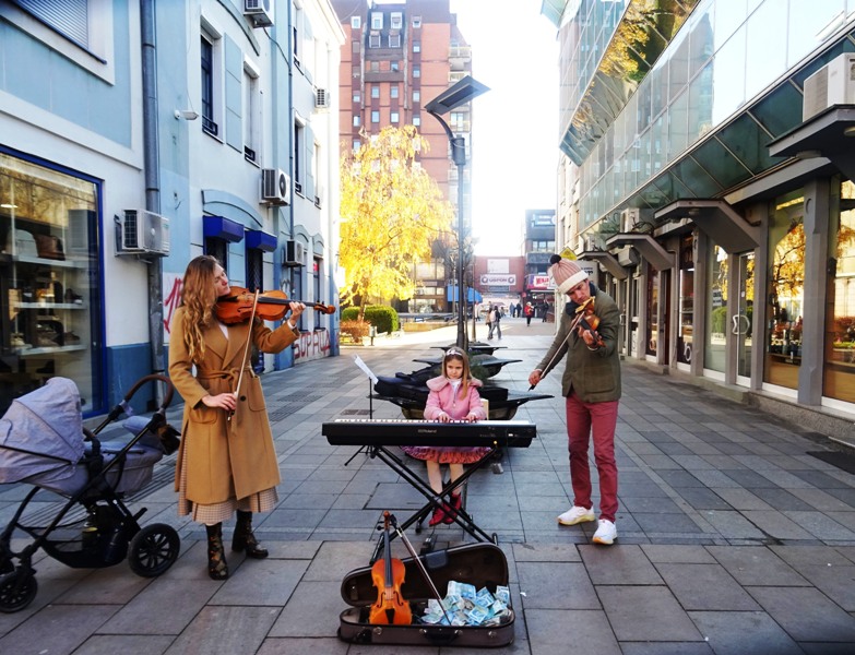 – Породични наступ је посебан, другачији. Имам две старије ћерке из првог брака, Лану и Софију и са њима сам раније свирао на јавним местима. Долазили смо и у Чачак више пута. Оне су одрасле свирајући на улицама и трговима и сада студирају виолу и клавир – каже Данило Анђелковић, улични свирач, професор виолине.