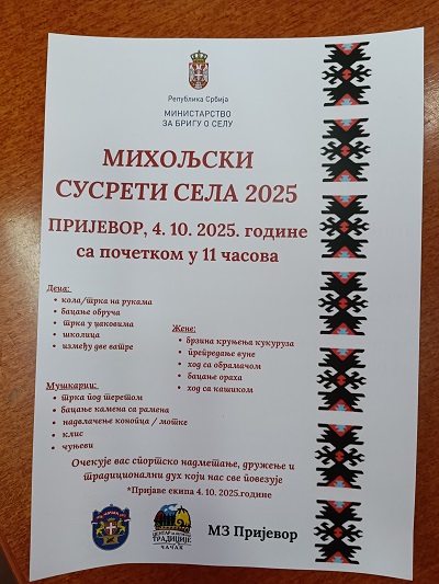 „МИХОЉСКИ СУСРЕТИ СЕЛА“ У СУБОТУ, 4. ОКТОБРА, У ЦЕНТРУ ПРИЈЕВОРА