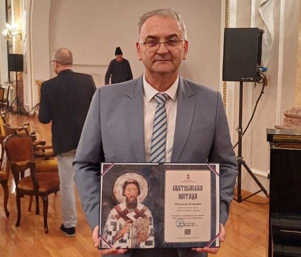 Миладин Божовић, директор ОШ „Сретен Лазаревић“ добитник је Светосавске награде за 2025. годину