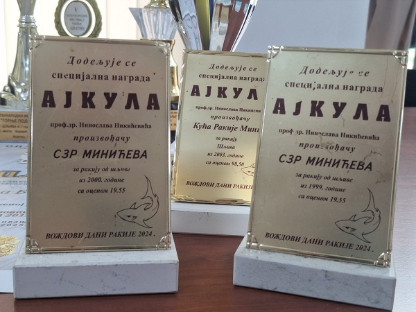 И на овогодишњим десетим „Вождовим данима ракије“ у Рачи Крагујевачкој „Минићева кућа ракије“ је освојила пет „ајкула“, што представља изузетно велики успех, какав се ретко постиже и о коме многи само могу да сањају. Награђени су сви Минићеви узорци ракија које је пријавио за то такмичење, а неки од њих су достигли чак и оцену 19.86. Реч је о ракијама из осамдесетих и деведесетих година прошлог века.