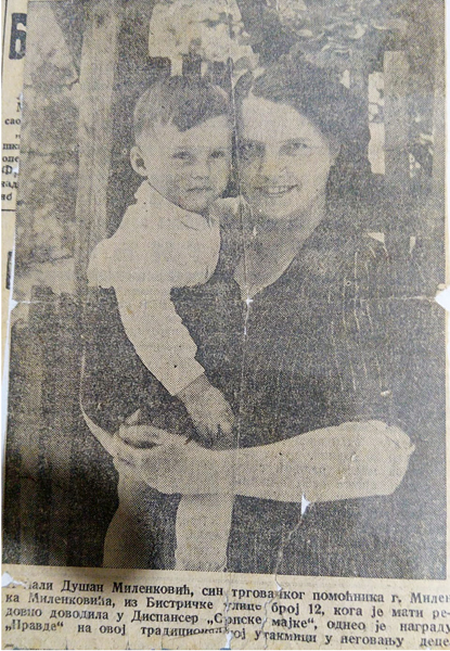 Наш саговорник Душан Миленковић и његова мајка били су „јунаци“ новинског текста давне 1940. Он је тада од кнегиње Олге добио диплому и награду као „најбоље однеговано дете“ у Београду. Сачувао је тај текст са сликом Ранке која га држи у наручју.