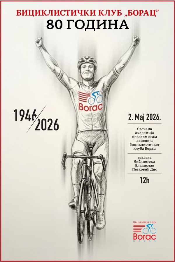 У Чачку, са Градског трга почине Бициклијада у организацији АПЕX ТИМА. Организатор позива све грађане Чачка да учествују и заједно се провозају својим бициклима до Јежевице где ће имати прилику да поздраве учеснике бициклистичке трке за „НАГРАДУ ЧАЧКА 2026”, као и да допринесу обележавању великог јубилеја Бициклистичког клуба „Борац”.
