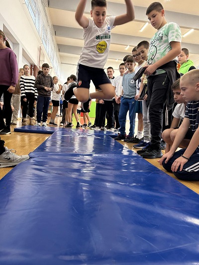 надвлачење конопца, прескакање вијаче, шут на кош, шут на гол, „бацање камена с раменаˮ (медицинке), издржај у вису на вратилу (у згибу), скок у даљ из места, трка носећи стонотениску лоптицу у кашици, трчање и доношење чуњева. Резултат на крају такмичења био је 16:11 у корист школе домаћина, али су на првом месту били међусобно дружење и смех.