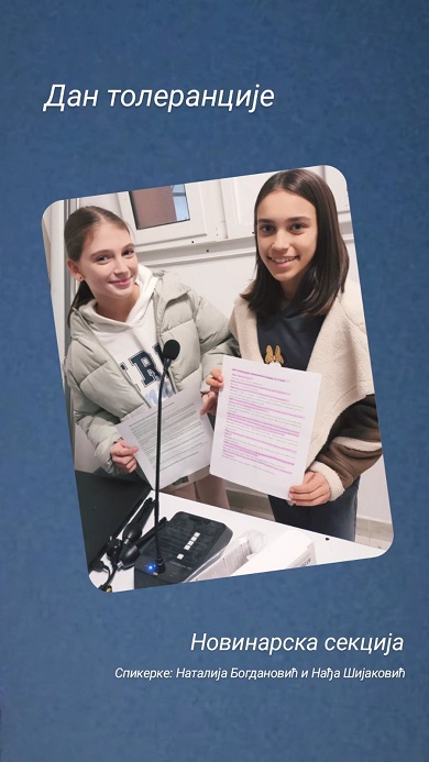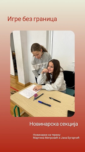 Такође, представници Новинарске секције имали су неколико задатака – писање предлога за побољшање другарских односа, саосећања, разумевања и доброг расположења у школи, анкетирање ученика и запослених о значењу термина толеранција, фотографисање и писање извештаја о одржаним Играма без граница, као и емитовање кратке емисије на тему толеранције путем школског разгласа.