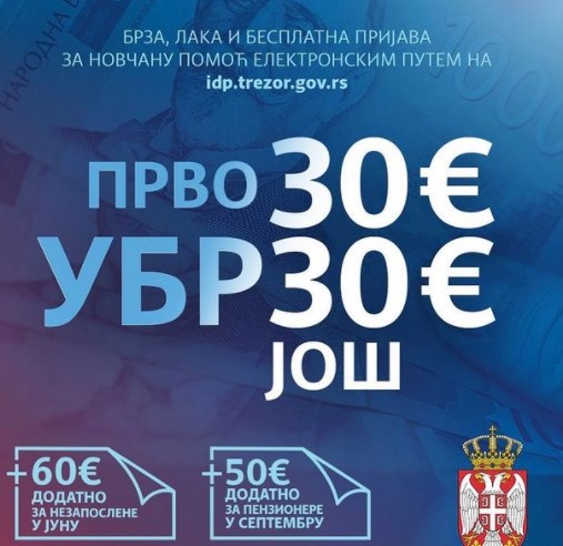 Iz Ministarstva finansija su na Instagramu precizirali da će prvih 30 evra biti isplaćeno u maju, a drugih 30 evra u novembru.