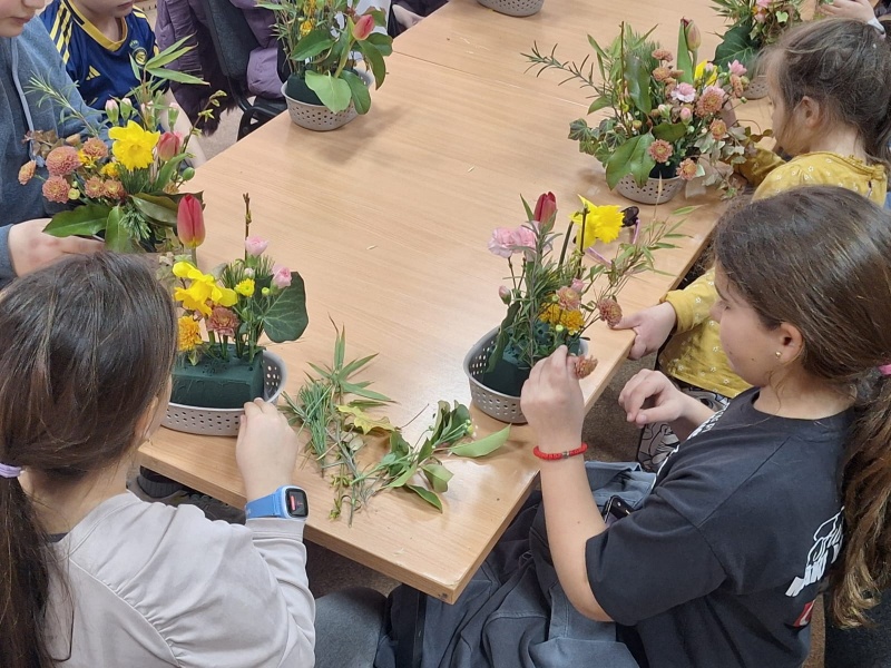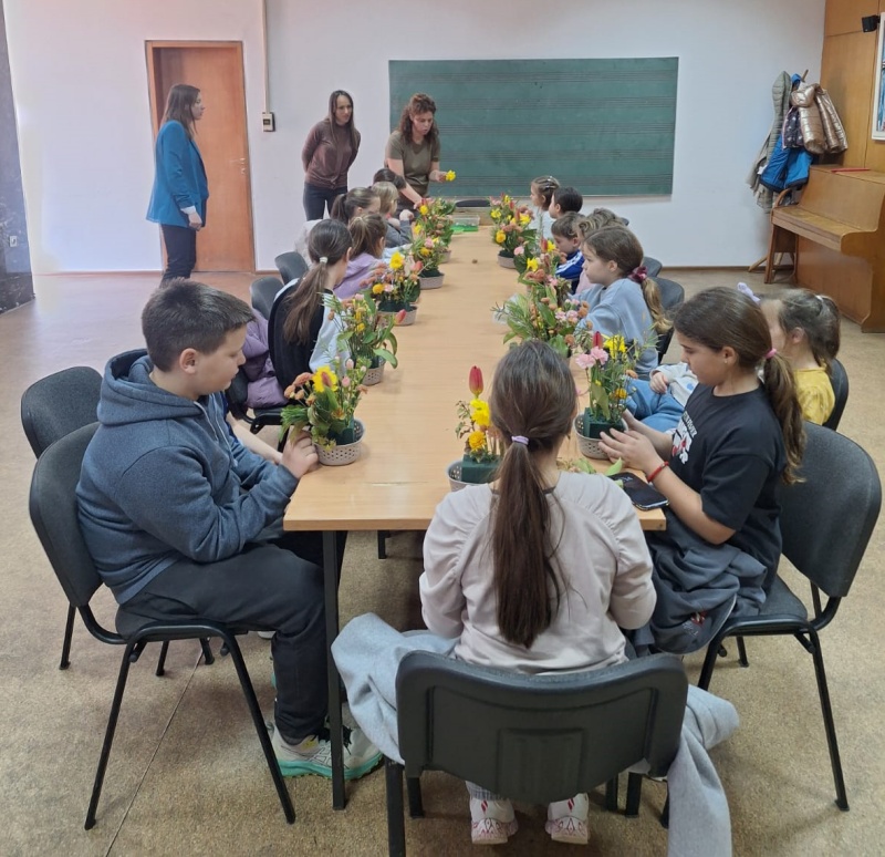 Малишани су у једночасовној радионици уживали дружећи се, правећи икебане. Своју креативност испољили су кроз разне врсте техника које су користили у изради цветне икебане.