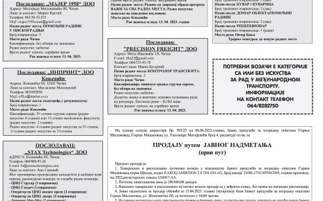 Фирми из Чачка потребан економски техничар за администратинве послове. Јавити се на телефон: 064-8403385