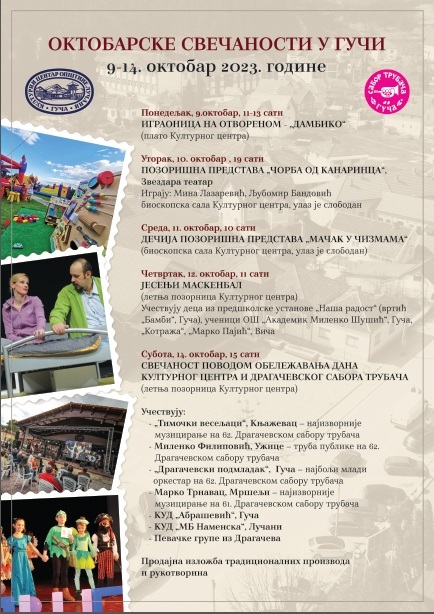 Поводом дана установе и обележавања годишњице одржавања Првог сабора трубача, давне 1961. године, Културни центар општине Лучани у Гучи припремио је богат програм.