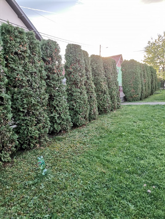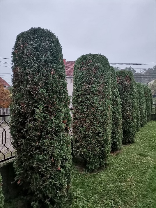 У дворишту имамо преко шездесет туја. Од тога, њих 25 су направиле лепу ограду, па се орезују само одозго и са две стране. Осталих 35 се мора обићи са све четири стране. Годинама их орезивали сами. У почетку ручно, а касније тримером. Пре неколико година дођемо до једног доброг мајстора, са сасвим пристојном ценом рада. Али од прошле јесени, мајстор више није могао да ради. Тако ми пронађосмо нове мајсторе. Њих троје орезивало и чистило тује цео дан, до вечерњих сати. Предвече стигао четврти са трактором да одвезе одсечене гранчице. И лепо то они наплатише. Целих 34.000 динџи. Комшија до нас, кад чу колико смо платили, само кратко рече: „Ја бих пре све то повадио, него што бих толико платио“. Али, би шта би. Знали смо и ми да је много, али се некако наместило.