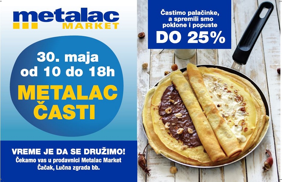 Posetite u četvrtak, 30. maja, od 10 do 18 časova, „Metalac market“ u Lučnoj zgradi u Čačku! Očekuju vas pokloni i specijalni popusti…