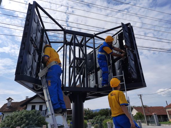 Пре више од две године прва фабрика лед екрана отворена је у Чачку. Или прецизније, у Прислоници, где се налазе производни и монтажни погони. Оснивачи Драган и Александар Стефановић, власници фирме ”Елсат”.