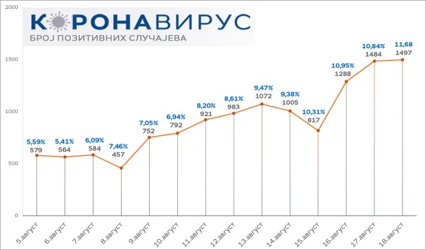 У Србији је коронавирус потврђен код још 1.497 особа од тестираних 12.818 узорака. Од последица заразе преминулo je још 6 особa. На респираторима 30 пацијената.
