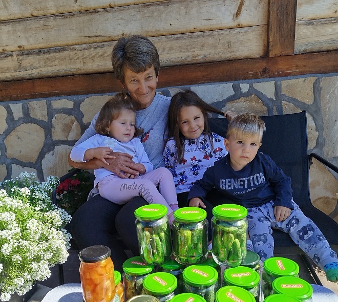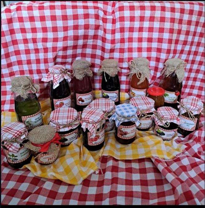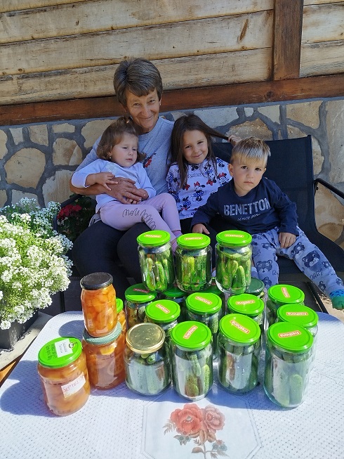 – Правила сам прво сокове, слатко и џемове од воћа, а касније сам лагано почела да проширујем асортиман. Заједно са тим, расле су и количине зимнице коју сам остављала. Данас производим много више сокова, углавном сирупа за разблаживање, џемова, слатког, ликера… Правим сокове и џемове од шумског воћа, од дрењака, трњина, глога и шипурака, као и купиново вино. Радим и кисели програм, најчешће по наруџбини, али увек свега тога имамо и на лагеру, овде у домаћинству, за наше комшије и пријатеље, али и случајне пролазнике – путнике намернике који долазе у драгачевски крај да се одморе или посете рођаке. Кућа нам је поред асфалта и направили смо посебан објекат у коме излажемо све оно што произведемо. Остављам краставчиће, ајвар, обичну и љуту паприку, шарену салату, туршију… Помажу ми и снајке, али не увек, јер имају малу децу. Имамо свега у понуди, а почели смо да правимо и водњику од дивљег воћа, јер је одлична за подизање имунитета – објашњава наша саговорница, посебно наглашавајући да у овом послу ужива и да јој је у свему томе највећа подршка унука од три и по године, која је врло забавна и радознала, што јој пружа додатну сатисфакцију приликом рада.