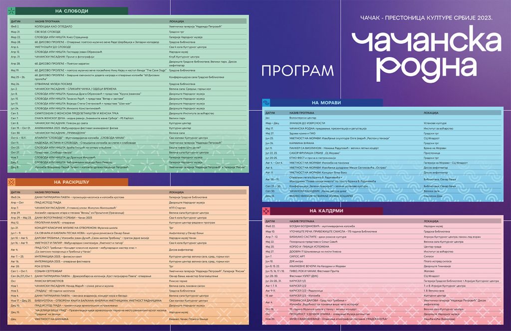 ПРОГРАМ „ЧАЧАНСКА РОДНА“ – ЧАЧАК – ПРЕСТОНИЦА КУЛТУРЕ СРБИЈЕ 2023.