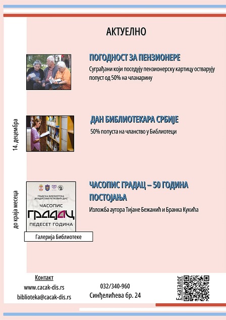 У Великој сали Културног центра Чачак 18. новембра отворено је 9. Међународно бијенале визуелних уметности „Библиотека – Отворена књига Балкана“ које ће трајати до 25. децембра. Тема овогодишњег бијенала визуелних уметности је „Фабрике уметницима – уметност радницима”, а дела ће бити изложена на сва 3 нивоа изложбеног простора Културног центра Чачак и у Галерији Народног […]