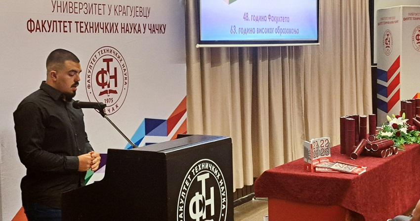 Дипломци су се окупили у великом амфитеатру факултета, где им се после интонирања химне „Боже правде“ обратила проф. др Данијела Милошевић, декан Факултета техничких наука у Чачку.