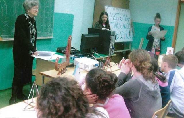 Такви су и сусрети са Добрилом Маџаревић, наставницом математике, песникињом. Седмострукм прабаком, сада јој је то најважније ”занимање”, ”функција”, животна улога. Стало је много тога у девет и по деценија живота жене којој су и бројеви и речи игра. Били су и помоћна средства да покаже и докаже да ”Математика није баук”, а може бити и ”распевана”. Све што је нашем уму пријемчиво, не само дечјем. Није Добрила ни после пензионисања стала и заборавила ђаке и учионицу. Обраћала им се песмама, али и као гостујући предавач у многим школама Моравичког округа. Са колико је само љубави и пажње припремала паное и сликовите приказе математичких фигура и обавезно подсећала на људе који су и зачетници и допринели развоју те науке. И кроз њена предавања су увек учвршћивана знања о Питагори, Талесу, Декарту… Поставила је математику и на сцену…