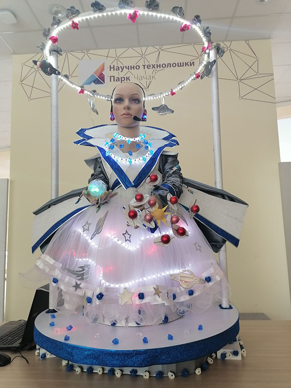 – Kreiranjem veštačke inteligencije programirali smo bežično, na daljinu, igrajući se jačinom svetlosnog signala, da Robotu Helga zasvetle oči, minđuše i ogrlica, da u desnoj ruci drži kuglu, kao znak prijateljstva koje nam nudi, a da u levoj ruci ima svoj leteći planetarijum, pošto ona dolazi iz druge dimenzije, iz budućnosti. Helga je pametna onoliko koliko smo je mi učinili pametnom. A učinili smo je pametnom tako što koristimo veštačku inteligenciju i na njoj je veliki broj veštačkih čula. Naravno, koristimo određeni interfejs Oktopod Studio, sve možemo programirati, a možemo i re-programirati. Svi praktični modeli ili makete, koje će danas moći da vide deca i profesori, rade uz pomoć veštačke inteligencije, tj. veštačke pameti. Pored Robota Helga, demonstriraćemo još neke pametne modele, kao što su: pametna kuća za 21. vek, pametna vetrenjača, pametna bezbedna regulacija saobraćaja na pružnom prelazu, pametna mašina za sečenje stiropora, mikro bitovi kao xepni računari, robotići koji plešu, drveni roboti za malu decu koja mogu da se poigraju njima… – predstavila je modele, u razgovoru za naš list, profesorka tehnike i tehnologije i informatike i računarstva Milkica Kostić Zlatić, koja se već dugi niz godina bavi robotikom i ostvaruje velike uspehe sa učenicima na takmičenjim iz robotike. Pre dve godine polaznici Regionalnog centra za talente Čačak na državnom prvenstvu su osvojili dve zlatne medalje i jednu srebrnu na takmičenju iz Robotike – Robo INT Invent. Inače, profesorka se ponosi i sa dva učenika koja su se sa istraživačkim radom “Pametna kuća za 21. vek” plasirala na Republičko takmičenje.